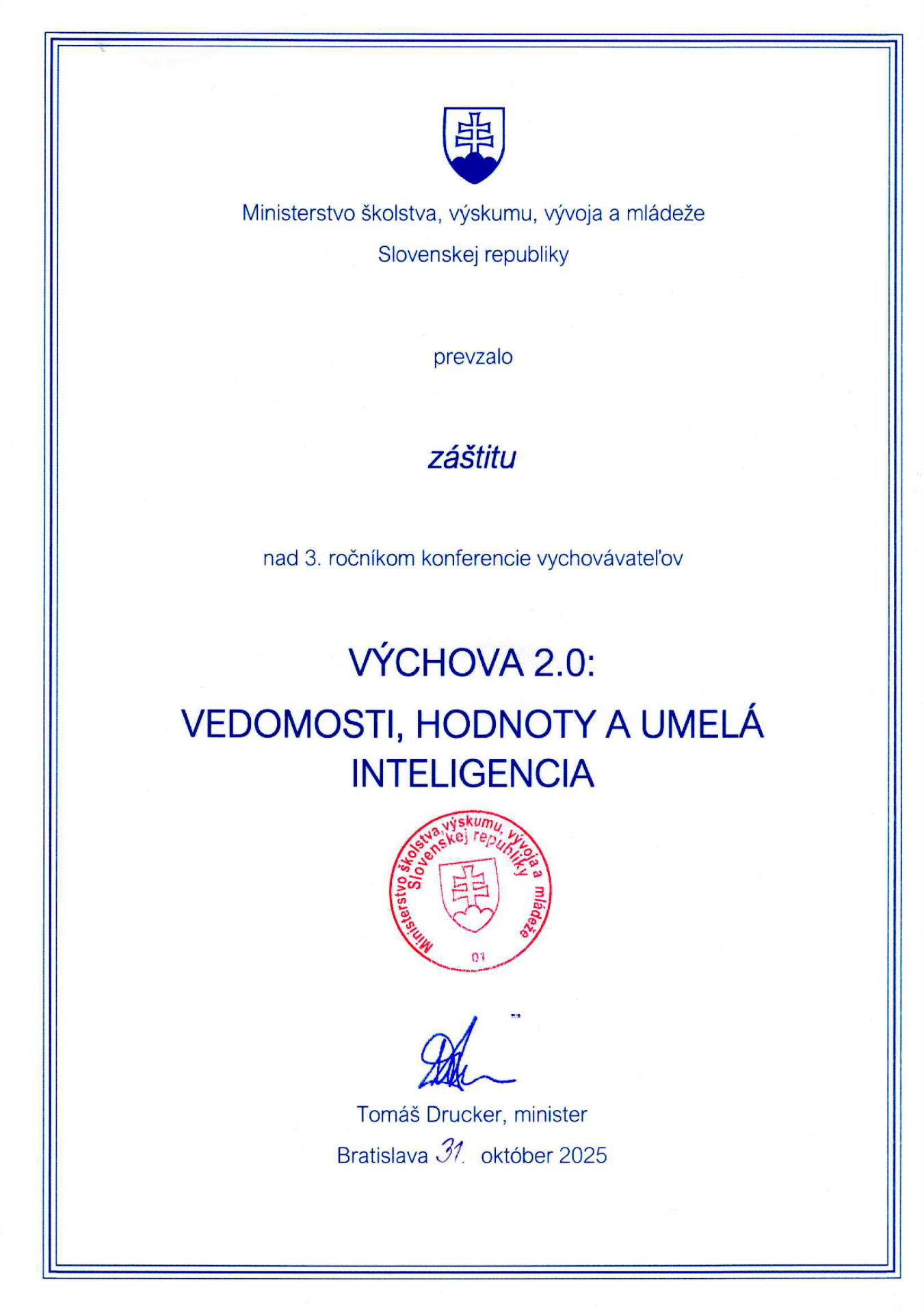 Ministerstvo školstva, vedy, výskumu a športu SR – sekcia stredných škôl a celoživotného vzdelávania podľa § 67 ods. 5 zákona č. 138/2019 Z. z. o pedagogických zamestnancoch a odborných zamestnancoch a o zmene a doplnení niektorých zákonov v znení neskorších predpisov po posúdení všetkých náležitostí